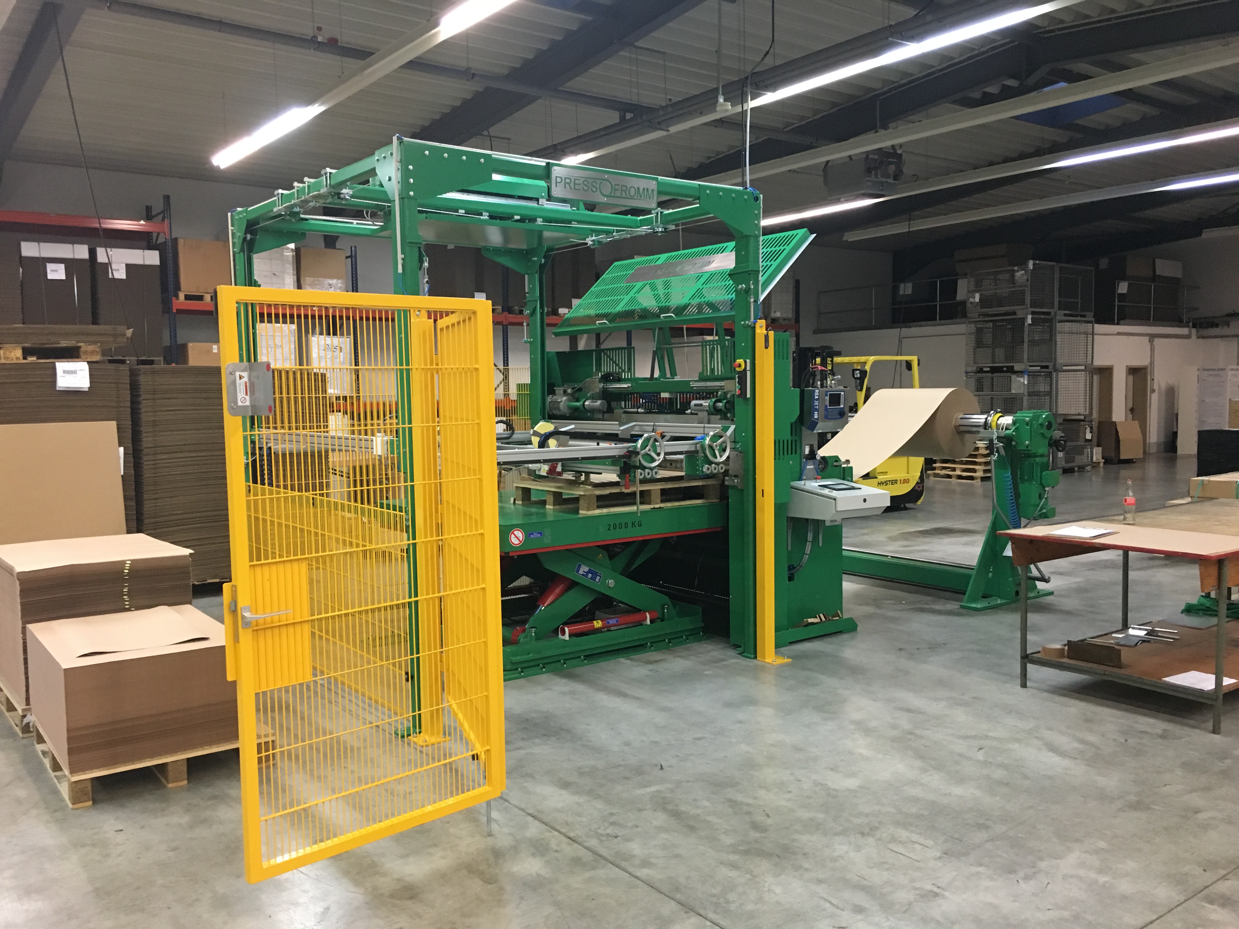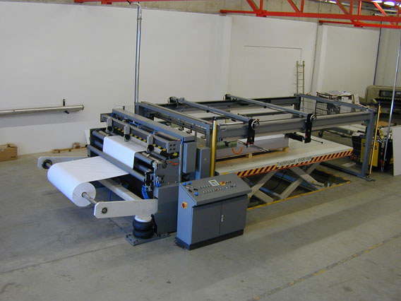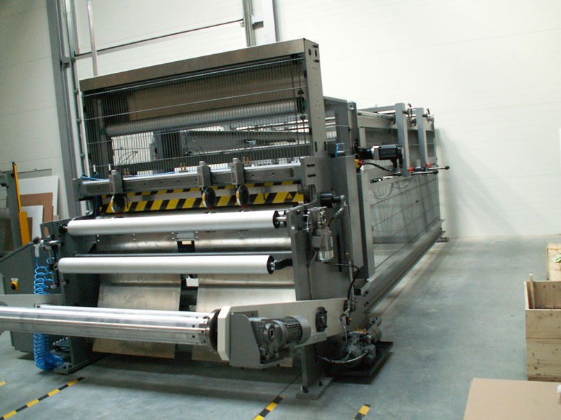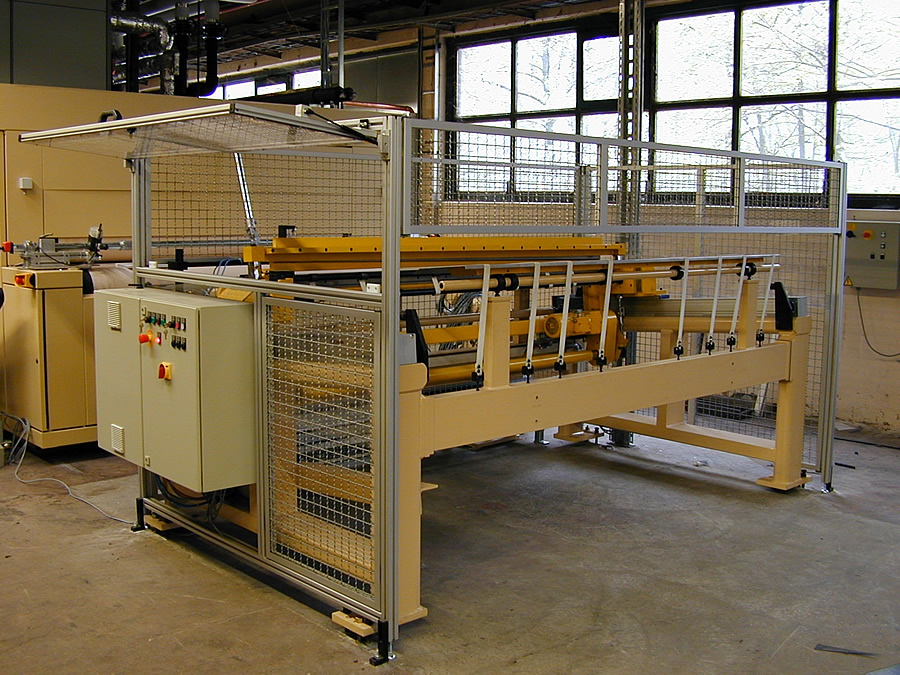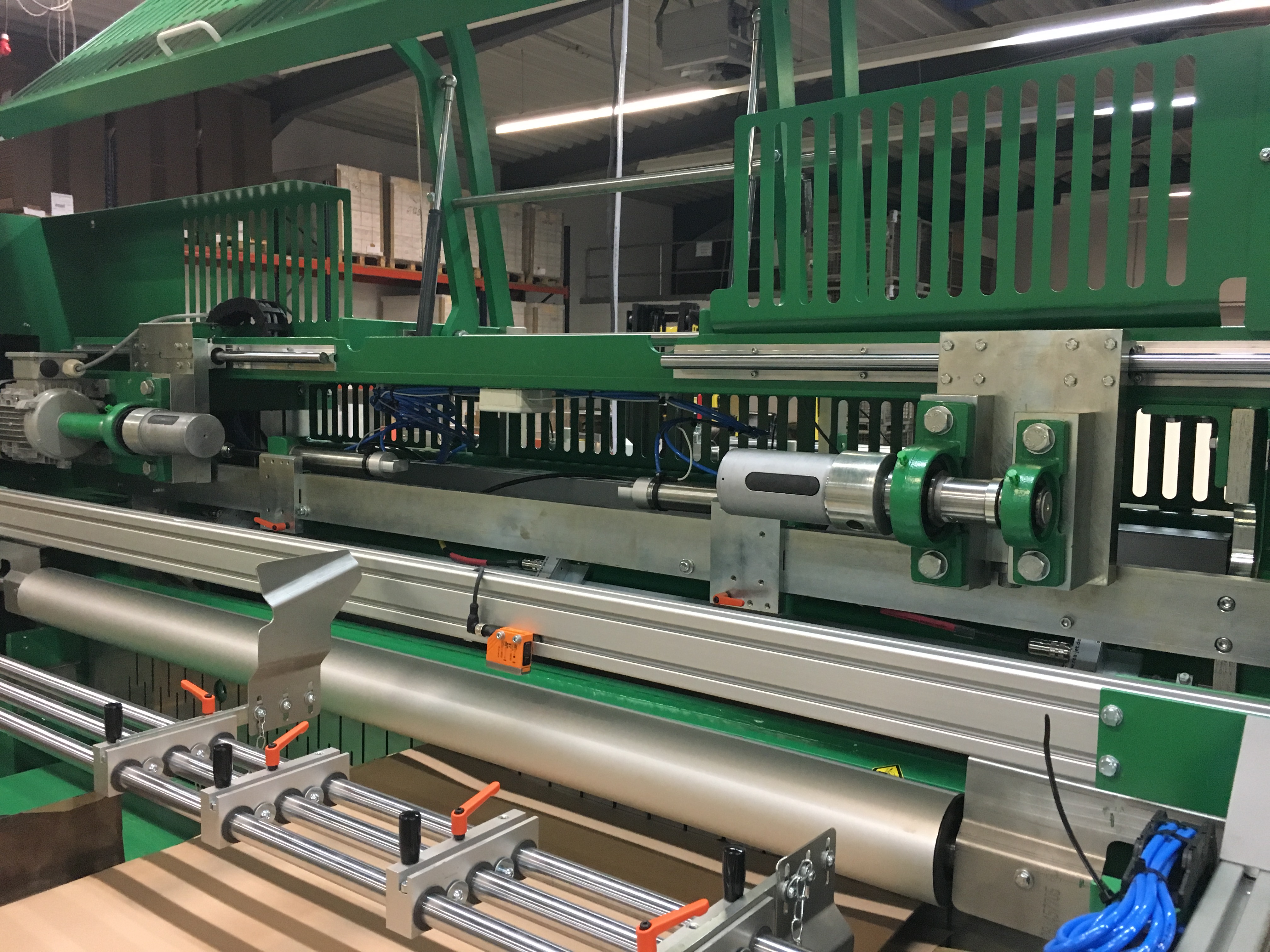 Der Hub-Querschneider vom Typ Pressto wurde in einen vorhandenen Umroller des Kunden vom Typ VARI-ROLL (Fabrikat Jagenberg) integriert und zusätzlich mit einem Ableger ausgerüstet.